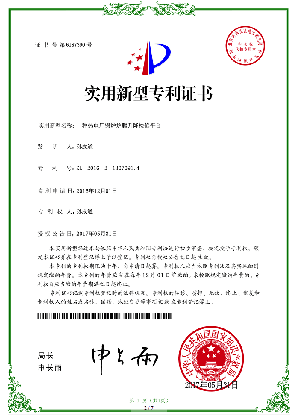 專利碳鋼結(jié)構(gòu)強(qiáng)度高、重量輕,比鋁合金材質(zhì)的實用性強(qiáng),經(jīng)濟(jì)耐用。使用中遇到損壞變形,電廠檢修人員容易整形維修!